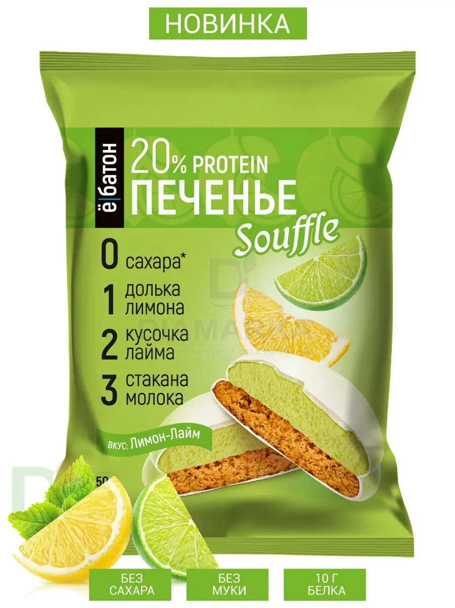 Печенье Ё/батон протеиновое с суфле Лимон-лайм 50гр Печенье Ё/батон протеиновое с суфле Лимон-лайм 50гр Печенье Ё/батон протеиновое с суфле Лимон-лайм 50гр