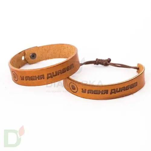 Браслет кожаный "У меня диабет" на завязках (детский-подростковый) в Казани