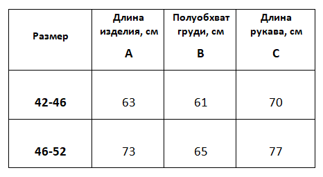 С - длина рукава (от горловины)