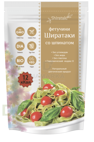 Фетучини Ширатаки Shirataki со шпинатом без углеводов и глютена 340гр