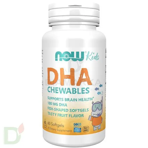 Витамины NOW Омега-3 детская для улучшения памяти и внимания, жевательные пастилки, 1000DHA, 60 шт в Казани